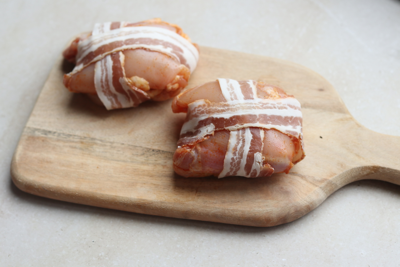 Heerlijk sappige kippendij met kruidenkaas en spek!