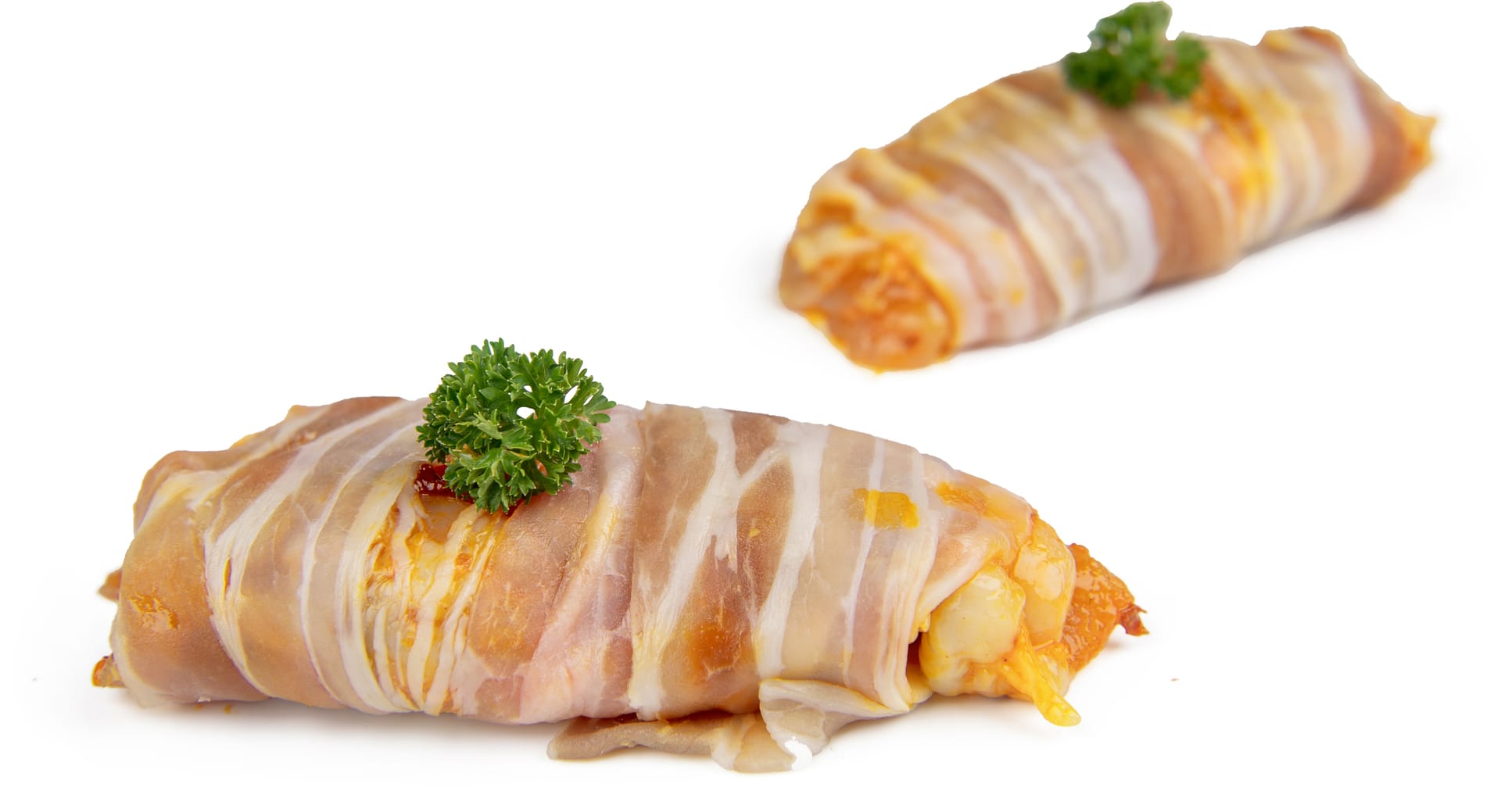 Kipfilet gevuld met roomkaas en omwikkeld met spek