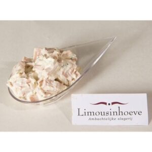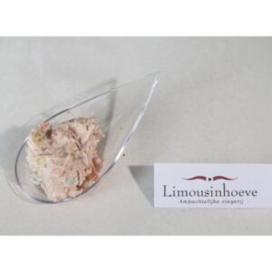 Gebakken scampi in een zachte saus van roze pepertjes. Met goud ster bekroond op de vakwedstrijden